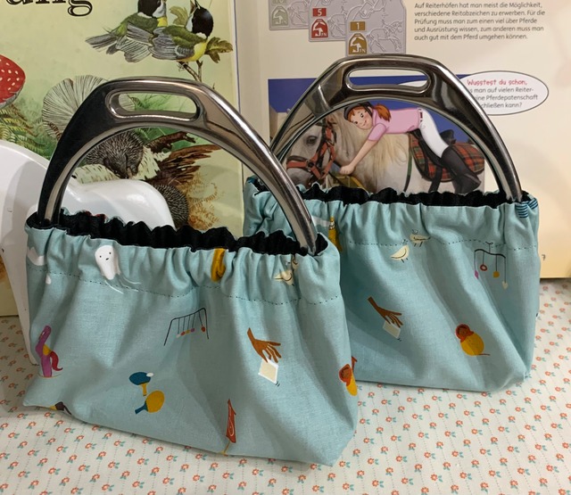 【乗馬用品】鐙カバーmini small things/ blue 1 鐙用カバーです。 鞍に傷が付くのを防ぎます。 可愛いカラーと柄でリバーシブルで 作っておりますので、 洗い場で自分の鞍の目印にもなります。 そして上部がゴムなので、急いでいる時も 片手で楽に外せます。 そもそもカバーを作った理由は、 乗馬用品って高い、種類少ない、売ってない 。・゜・(ノД`)・゜・。 なのでPOPでカラフルな物を ちゃんと自分で考えて、線を引いて 何度も試作して、可愛いと思うものを 作りました!(❁ー̀ωー́)وキリッ 商品は全部可愛くって良質な 輸入生地を使用してまーす。 今回は、ブルー地に色々な 可愛ものがいっぱいの柄と、 シンプルブラック地で作りました(=´∀`)♡ おばけ、マトリョーシカ、お魚、 ロッキングホース…不思議で可愛い柄です。 黒地の方もただの無地じゃつまらないので 所々に濃淡のあるグレーや焦茶が 薄く重なるオシャレブラックです。 2個で1組になっています。 ※サンプルの鐙はシンプルな形のもので、 幅約14cm、高さ約16.5cm、 ステップ部分約4.5cmを 使用しています。 サイズ 高さ約9cm 幅 約16cm マチ約9cm ※※※※※コピー禁止(˙-˙乂) ※※※※※