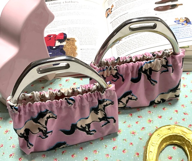 【乗馬用品】鐙カバーPink horse / lovely flowers